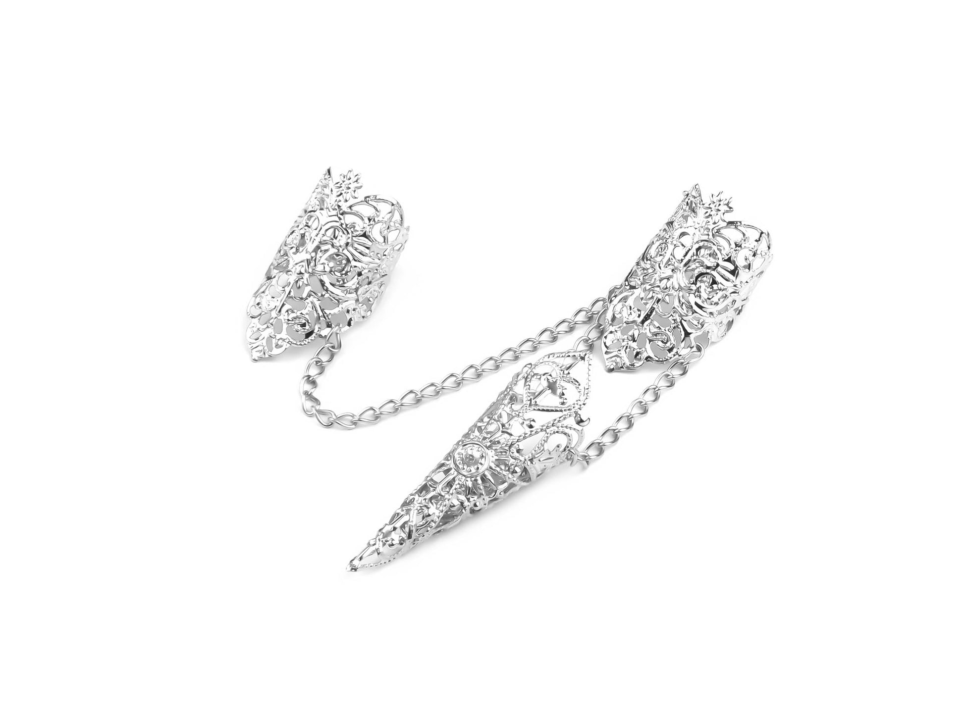 Gothic double ring with claw connected with chains. Wear it in multiple ways!